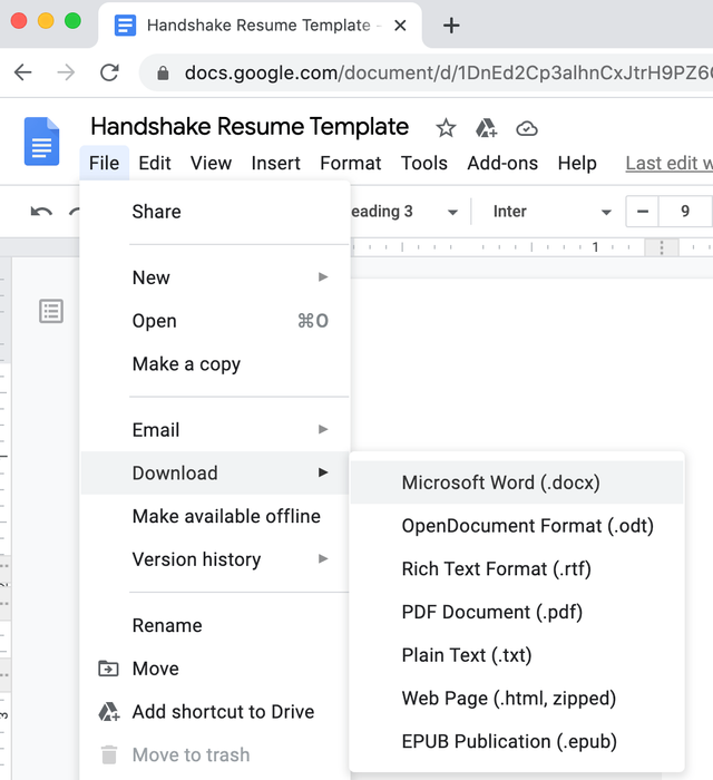 6. Save your resume as a PDF and upload it to your Handshake profile!
